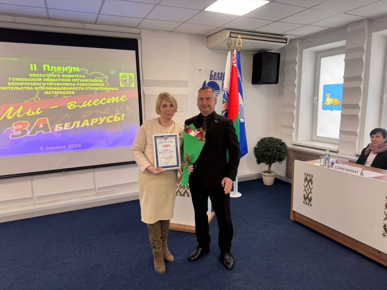 По итогам заседания областного комитета Гомельской областной организации Белорусского профсоюза работников строительства и промышленности строительных материалов состоялась торжественная церемония награждения.
